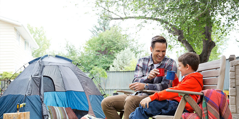 Get adventurous by setting up a tent in the backyard. If weather conditions permit, you can even have a little cookout fire with hot dogs and toasted marshmallows.